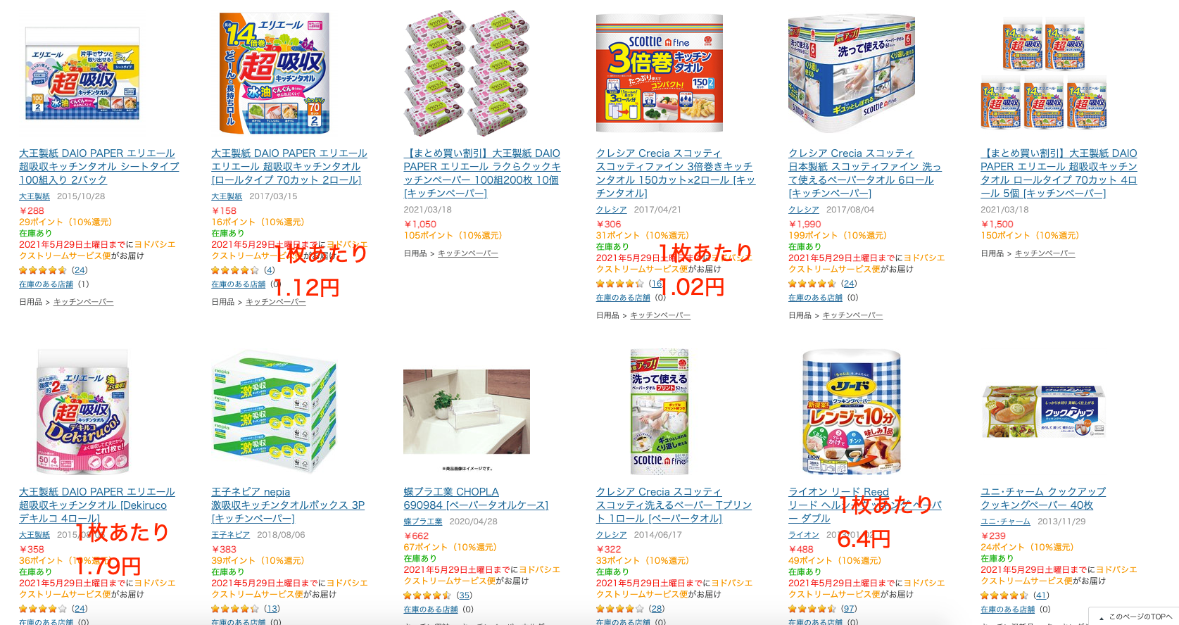 キッチンペーパーも「1枚1円前後」