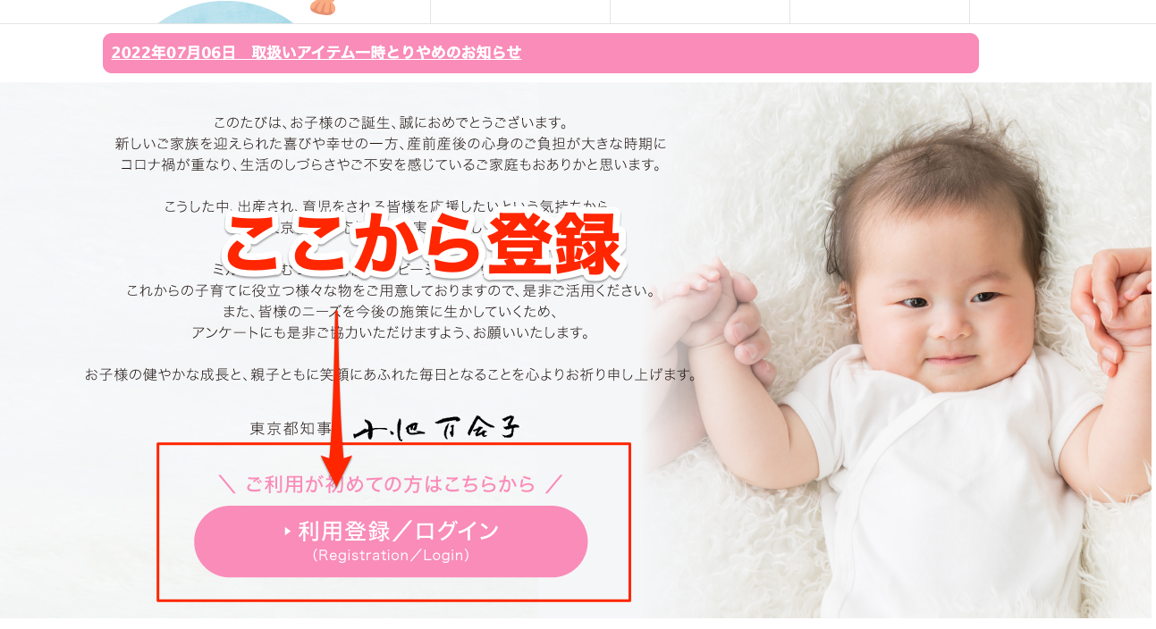 この記事は↓(スマホ向け)「赤ちゃんファースト」の商品サイトと登録の手順