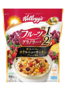ケロッグはなんとなく体に良さそうな「オールブラン」シリーズや、 超定番の「コーンフロスティ」など、「フレーク系」の種類が豊富ですが、 カルビーの「フルグラ」に負けじと、「グラノーラ系」も充実しています。