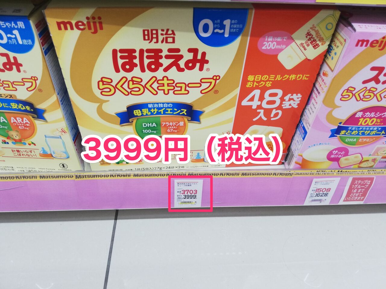 ※ほほえみ800g缶2056円 ほほえみらくらくキューブ3999円での計算
