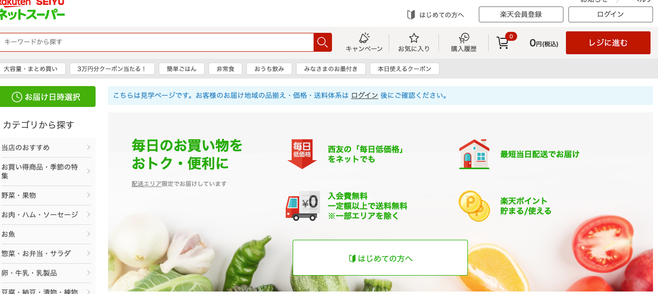 あの西友のネットスーパーがあります。 しかも、楽天とタッグを組んで!!