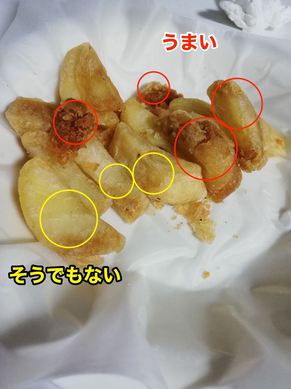 揚げが足りていない白っぽい箇所は「冷えたマック」の味。うまくない。