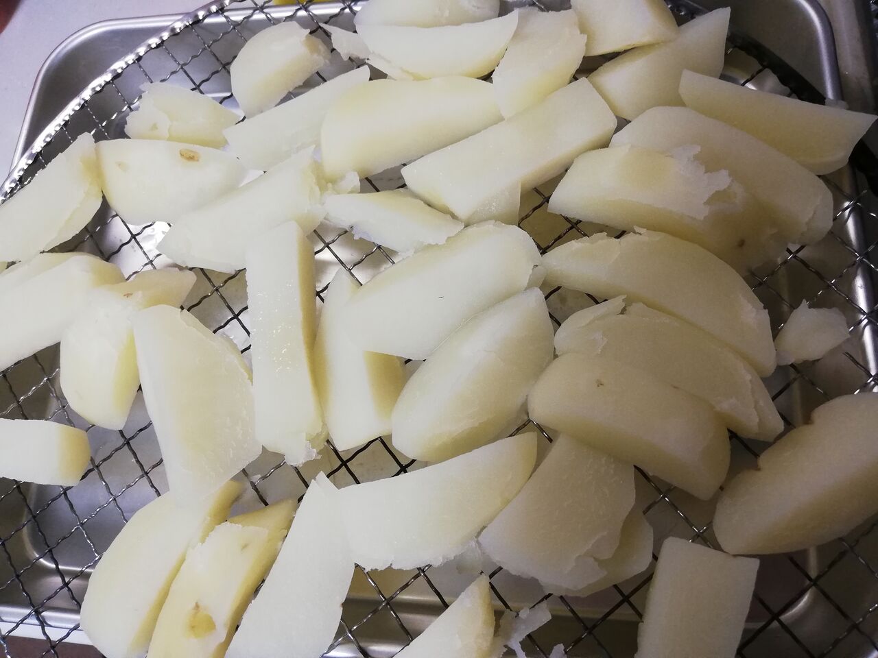 わたしは面倒だったので網の上にポテトをがっつり重ねて冷凍しました笑