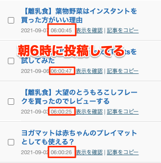 入荷通知だけでなく、普通の記事の投稿も通知してしまいます。 投稿時刻は毎朝だいたい6時です。