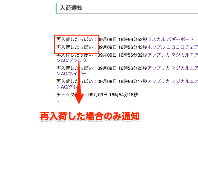 通知は「再入荷」したときのみします。 再入荷がない場合は通知はしません。
