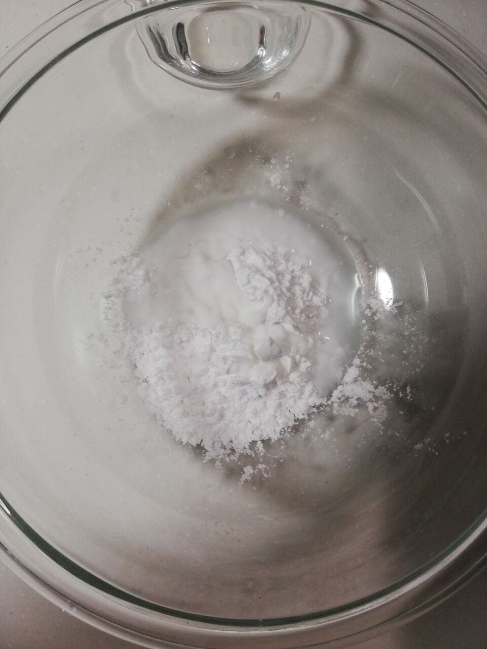 水を加えた片栗粉を混ぜて”ダマ”にします。