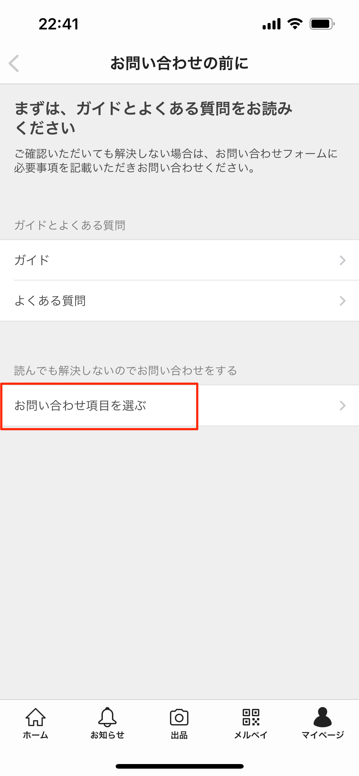 「お問い合わせ項目を選ぶ」