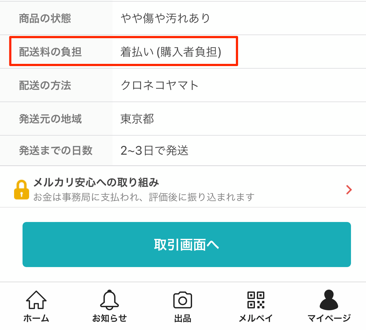 送料は着払いで出品しました。